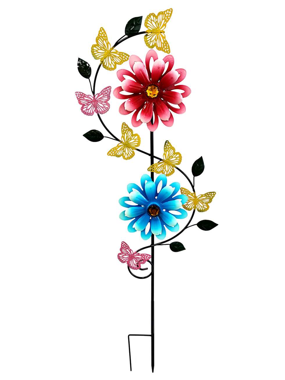 Flower butterfly iron arts and crafts, shape image, bright color. It turns when the wind blows. Suitable for courtyards, parks and other places.