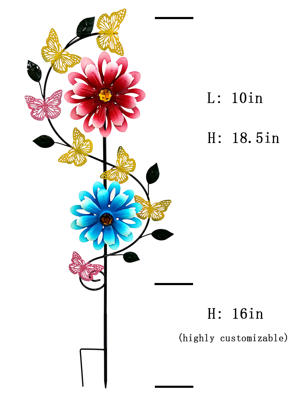 30-40dayFlower butterfly iron arts and crafts, shape image, bright color. It turns when the wind blows. Suitable for courtyards, parks and other places.