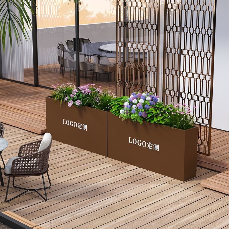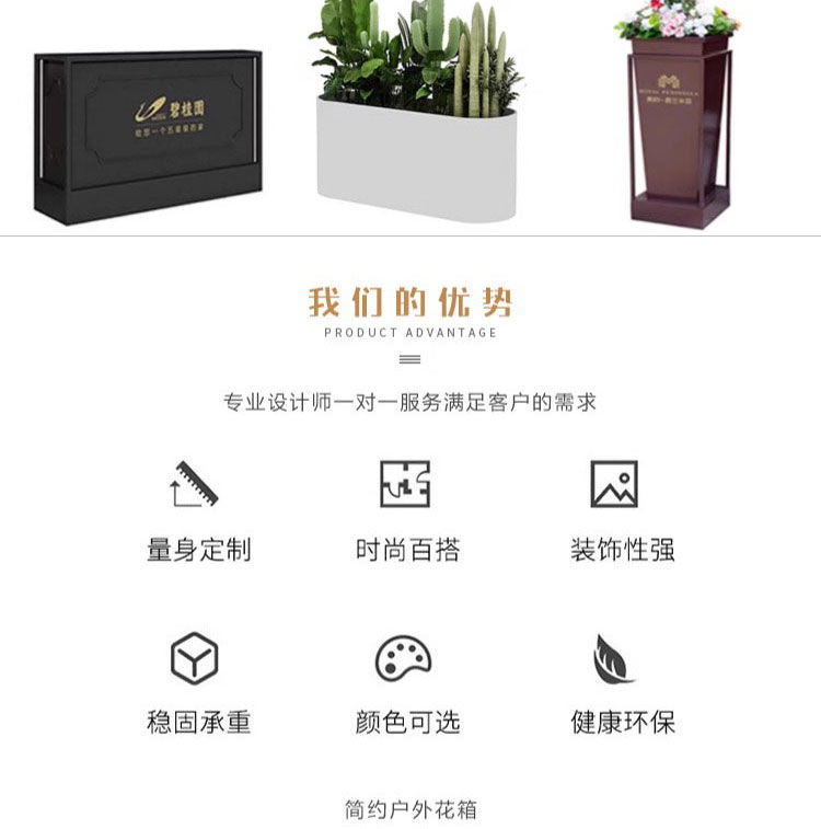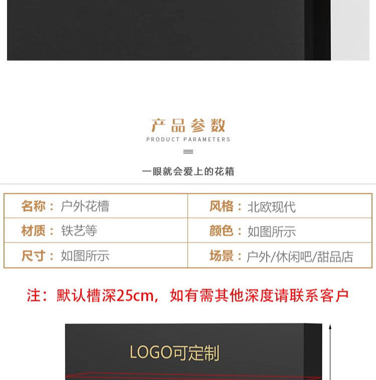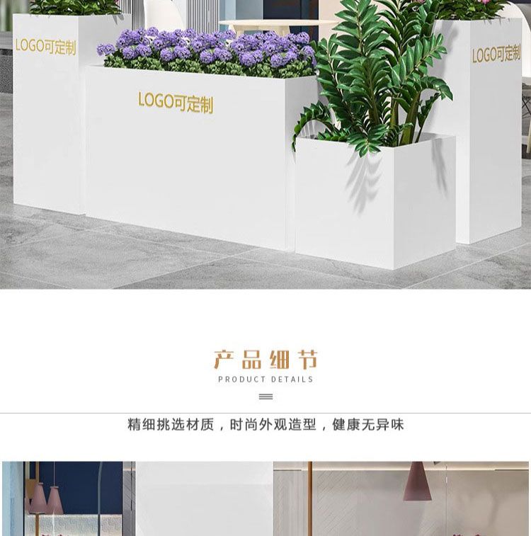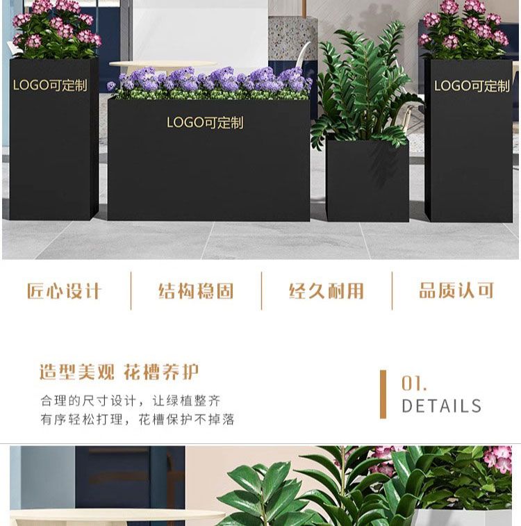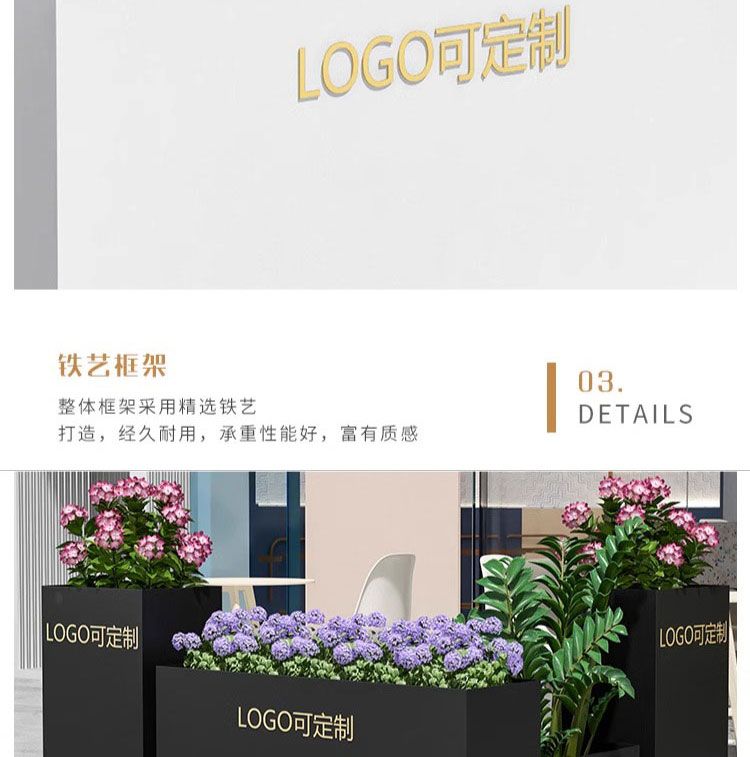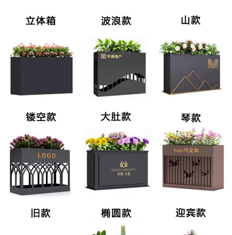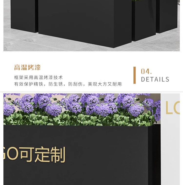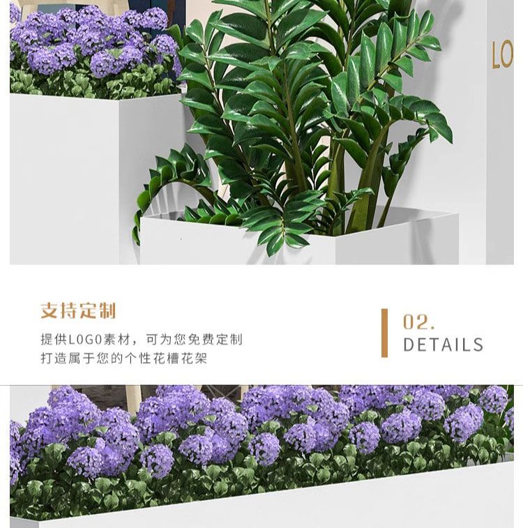 ⑥About customization: All flower box styles can be customized, whether it is size, color or LOGO. You can add high-leg design, brake silent wheels and solar light strips, etc., and you can also customize it according to your drawings. Welcome to contact us, we will provide you with design drawings for free.