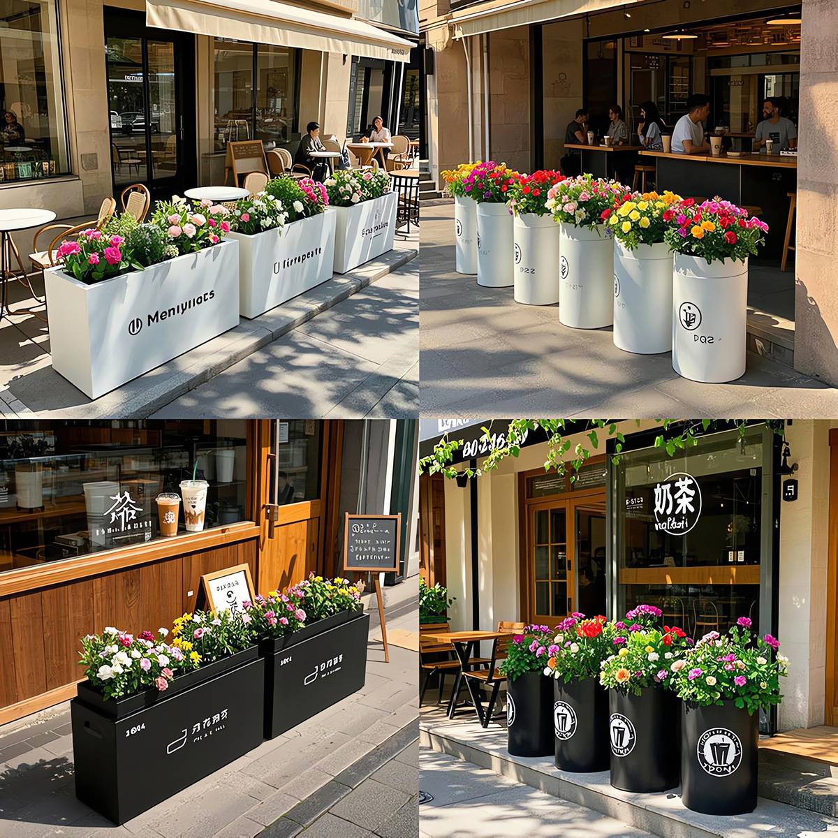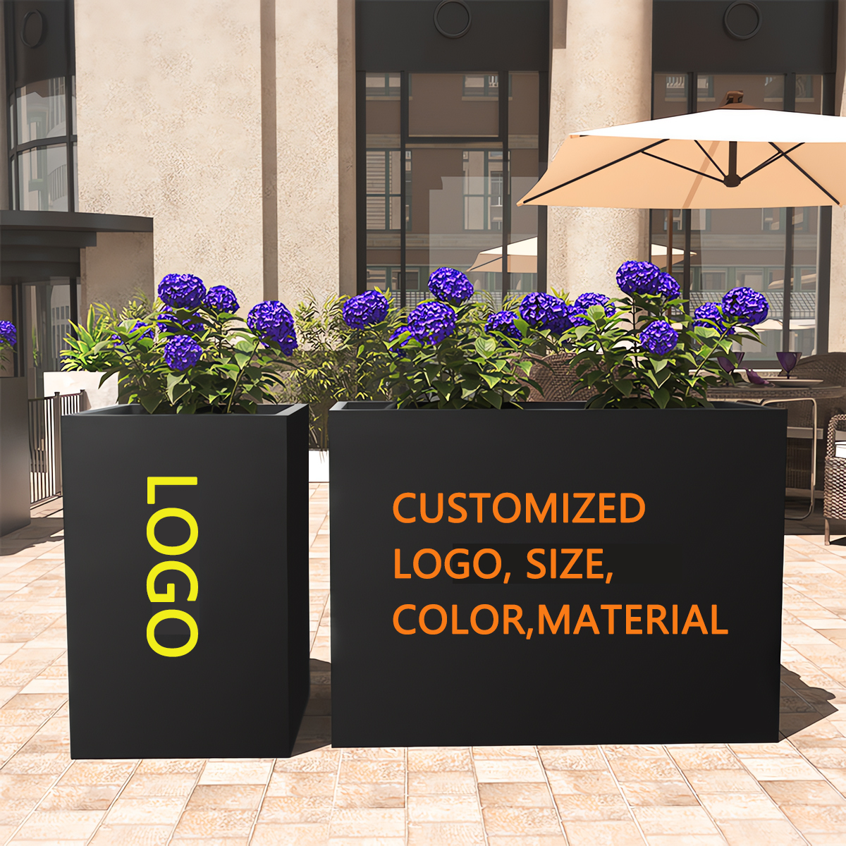 ⑥About customization: All flower box styles can be customized, whether it is size, color or LOGO. You can add high-leg design, brake silent wheels and solar light strips, etc., and you can also customize it according to your drawings. Welcome to contact us, we will provide you with design drawings for free.