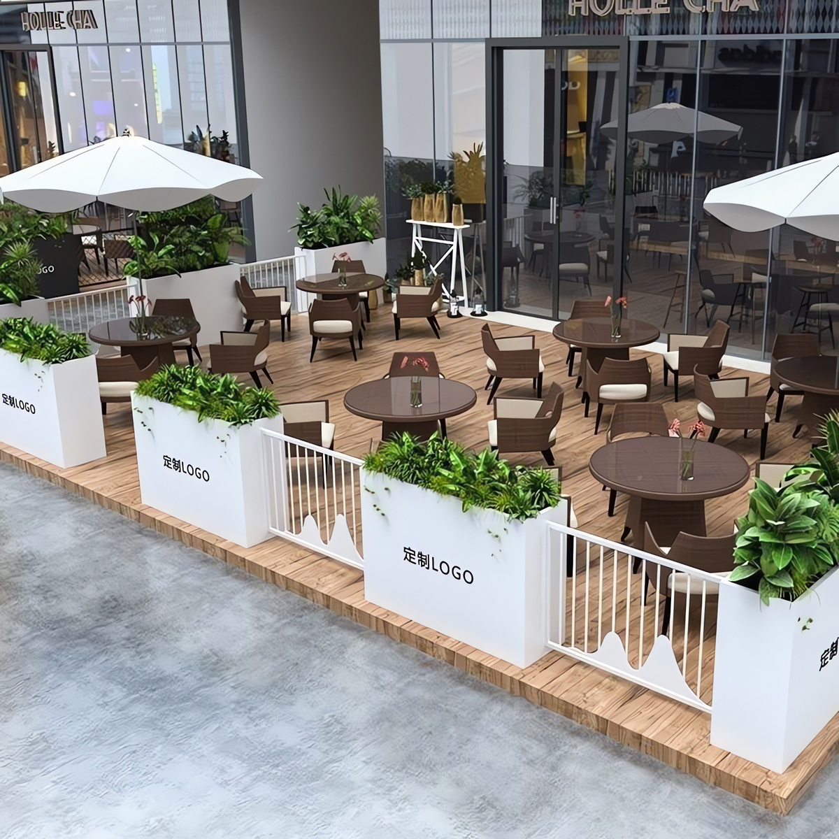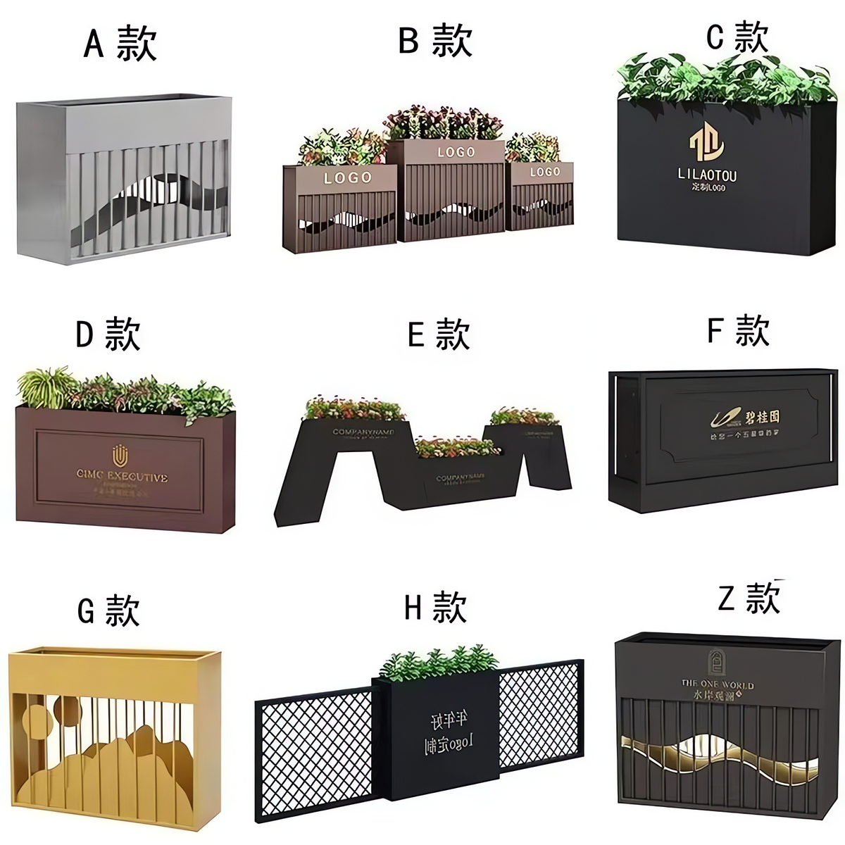 ⑥About customization: All flower box styles can be customized, whether it is size, color or LOGO. You can add high-leg design, brake silent wheels and solar light strips, etc., and you can also customize it according to your drawings. Welcome to contact us, we will provide you with design drawings for free.