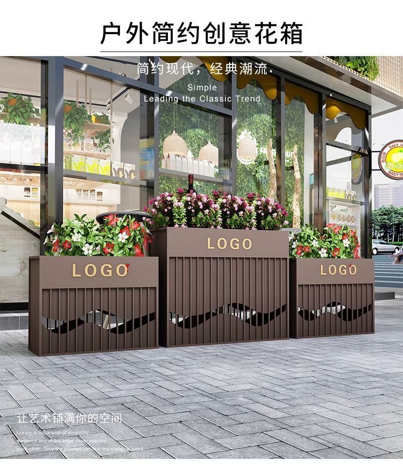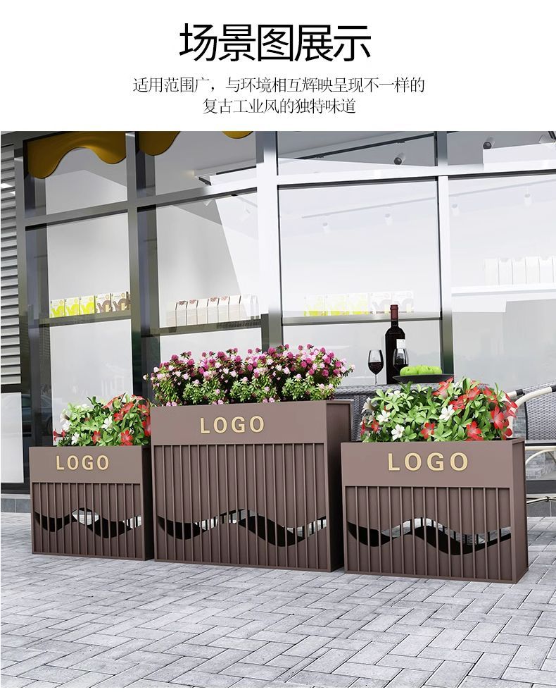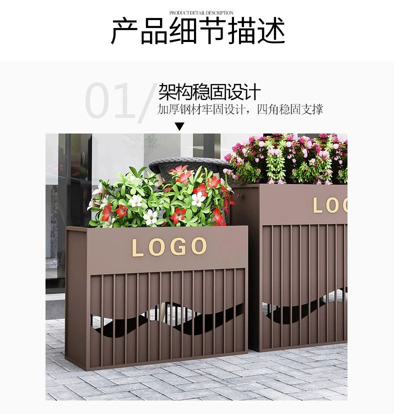 ⑥About customization: All flower box styles can be customized, whether it is size, color or LOGO. You can add high-leg design, brake silent wheels and solar light strips, etc., and you can also customize it according to your drawings. Welcome to contact us, we will provide you with design drawings for free.
