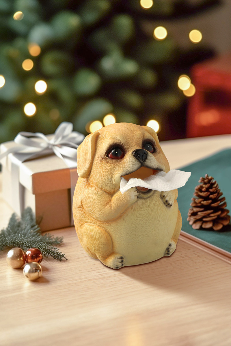 A creative tissue box, made of resin. A cute puppy dog look