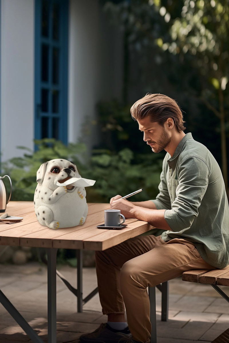 A creative tissue box, made of resin. A cute puppy dog look