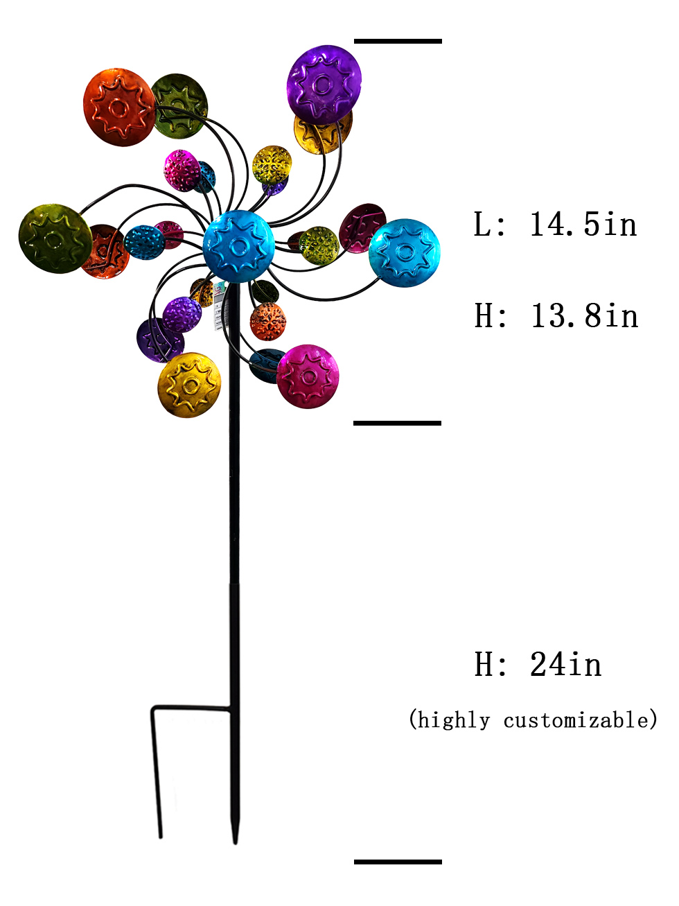 windmilling, iron arts and crafts, shape image, bright color. It turns when the wind blows. Suitable for courtyards, parks and other places.